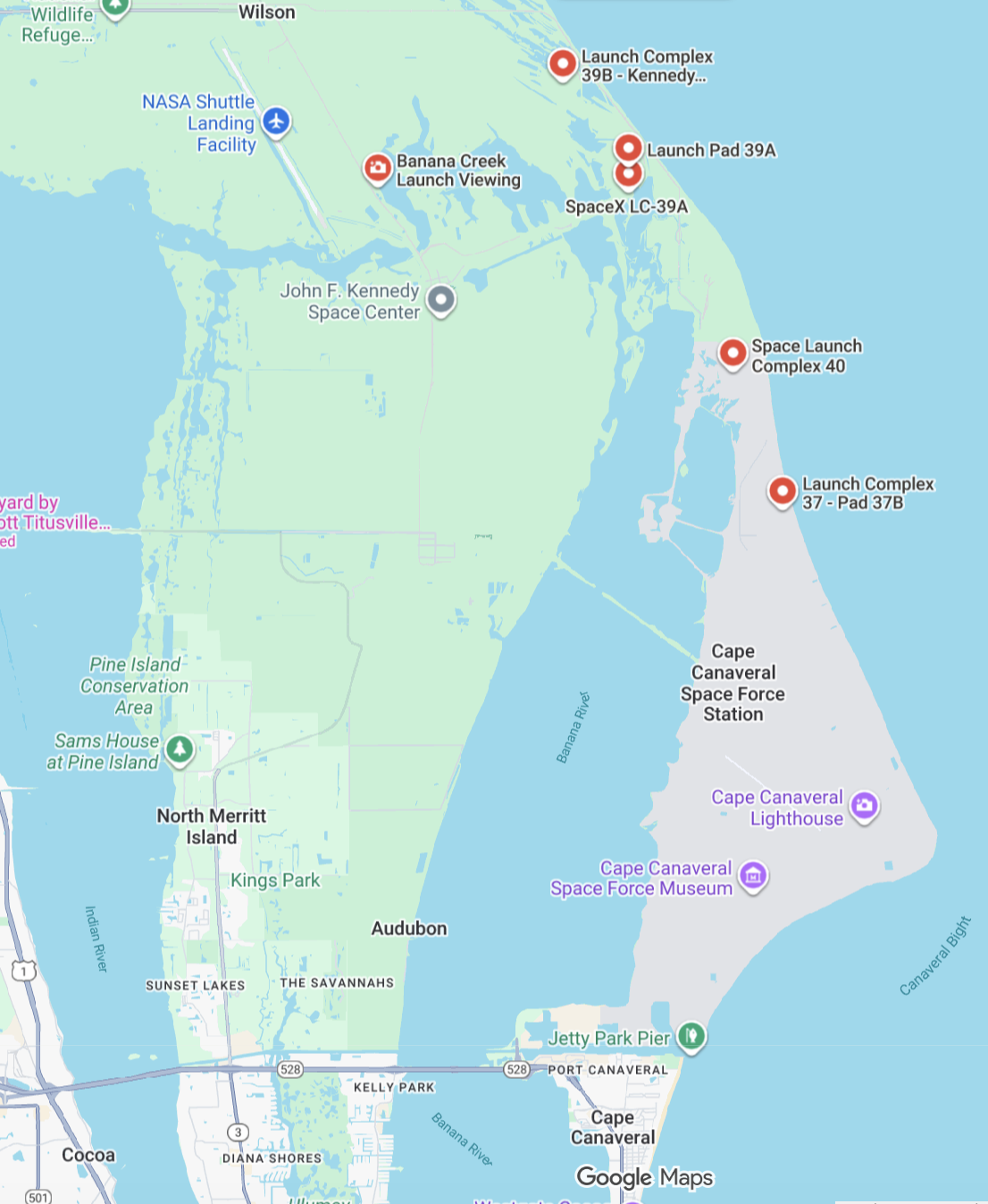 NOTE: Two locations house the space program in Florida: the Kennedy Space Center (KSC) and Cape Canaveral Space Force Station (CCSFS). The CCSFS is a part of the United States Air Force Space Command. It is adjacent to the Kennedy Space Center which is on Merritt Island, Florida.